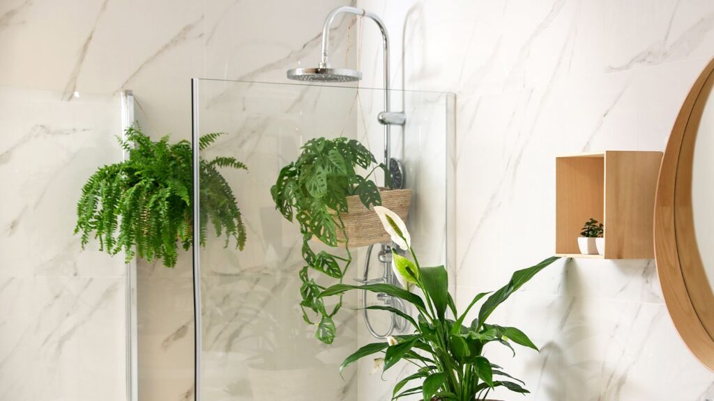 “Choose a humidity-loving plant like a fern or orchid and position it where it won’t get directly hit by water but can absorb the steamy ambiance,” Justice suggests.