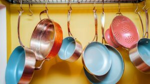 “Store cookware properly to avoid damage,” De Vizcaya Ruiz says. “Use protective padding between stacked items to prevent scratches and chips.”
