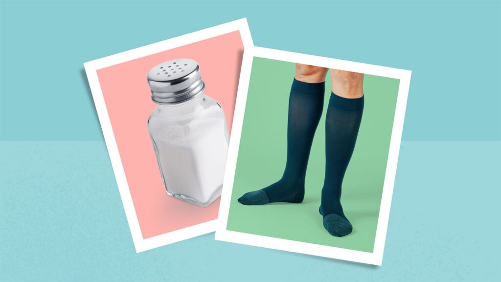 Adjusting your eating habits may help reduce swelling too — especially if you’re eating more salty foods. Harvard Health Publishing says that excess sodium (salt) can cause water retention in your body. As a result, this fluid buildup can trigger swelling. If you notice your legs are swollen, and you eat a high-sodium diet, consider reducing your salt intake.