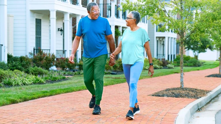 If you’re just starting out with a new walking routine, aim for 10 minutes, Viola advises. As that starts to feel comfortable, gradually increase the duration of your walks.